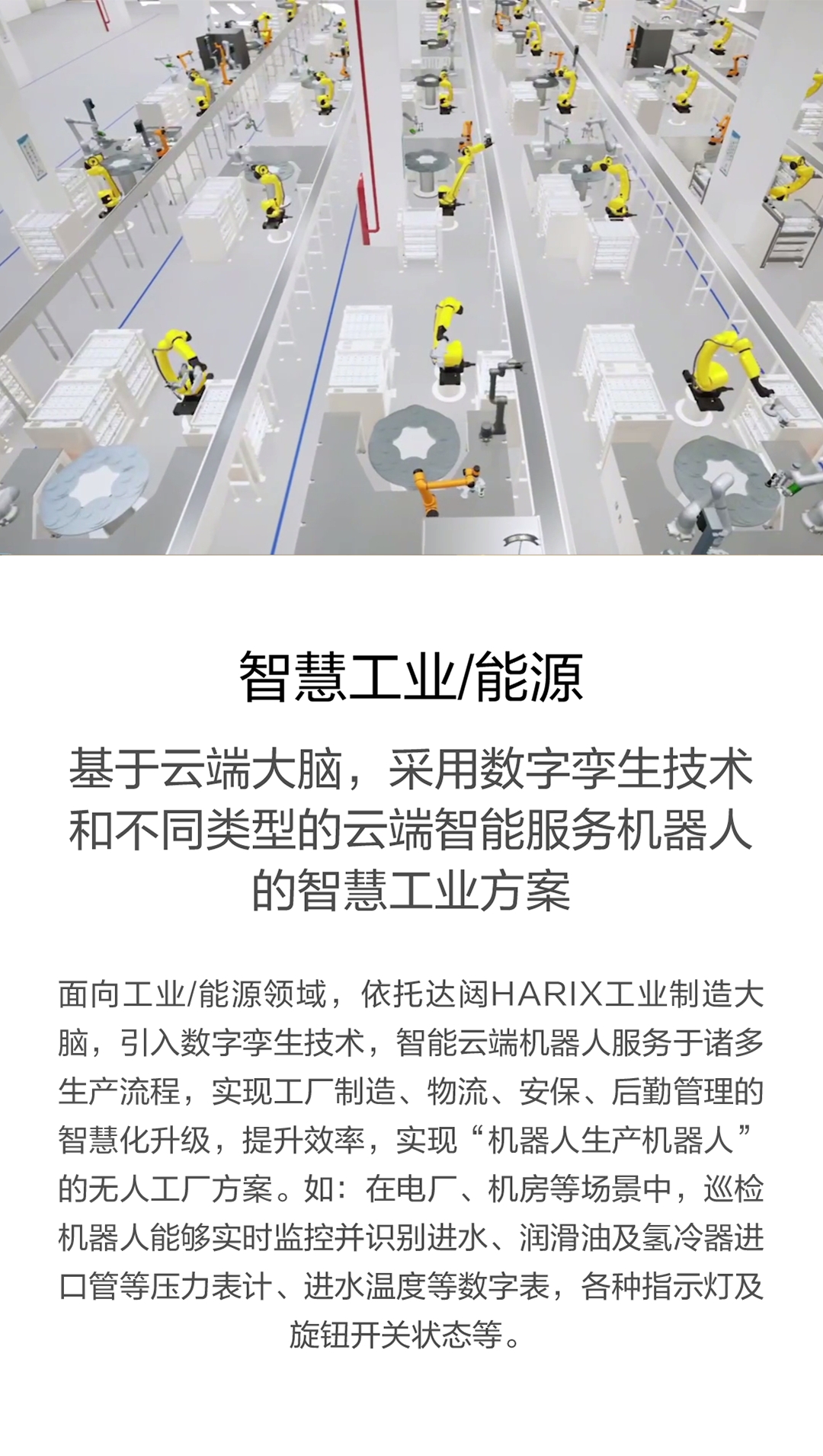 面向工业/能源领域,依托今年会HARIX工业制造大脑,引入数字孪生技术,智能云